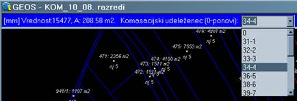 Stikali mm/cm določata, s kako natančnostjo koordinat točk se preračunavajo površine poligonov. Z ukazom Inicializacija dobimo ponovno preračunane vse poligone v izbrani natančnosti v zapisniku, kjer so razvidne tudi eventualne razlike površin in vrednosti.